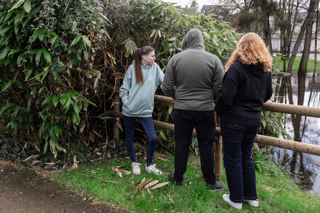 Julie (en noir) porte du L, Florent (en kaki) porte du XL et Elise (en bleu) porte du M.