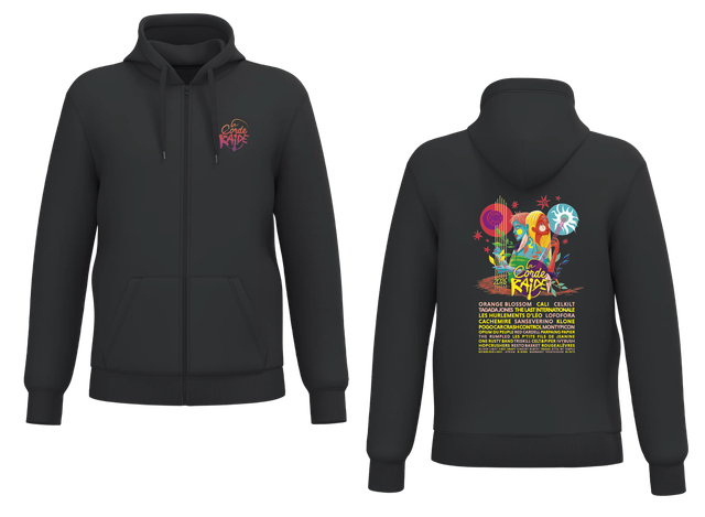Pensé pour les variations de température et d’ambiance, ce sweat zippé 2026 combine confort et souvenir de festival. Une pièce pratique, marquée par l’identité de l’édition.