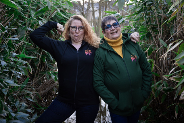 Julie (en noir) porte du L et Isabelle (en vert) porte du XL.